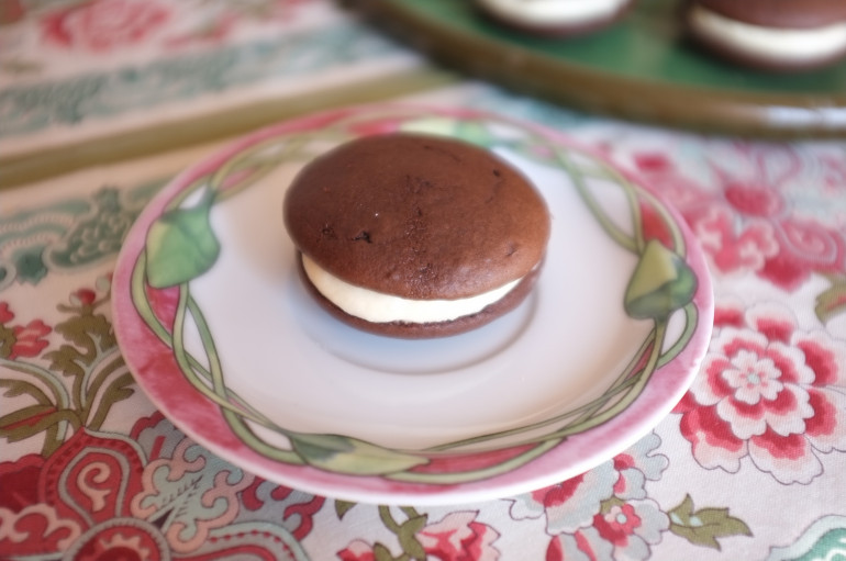 Les “whoopies“, difficile de résister à un tel nom, sont de petits gâteaux moelleux, assemblés comme des macarons avec une garniture au centre, mais au lieu d’être croustillants, ils sont tendres et fondants.
