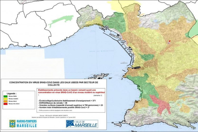 Dans la cité phocéenne, le cluster familial lié au variant britannique du virus semble pour l'instant maîtrisé selon le contre-amiral Patrick Augier, le patron des marins-pompiers de Marseille, qui analyse les eaux usées. "Nous avons conduit de nombreux tests dans l'environnement et à ce stade, c'est bien ce qu'imaginaient l'IHU et l'ARS, c'est un cluster familial, c'est-à-dire restreint. Ce n'est pas, a priori, un événement contaminateur".