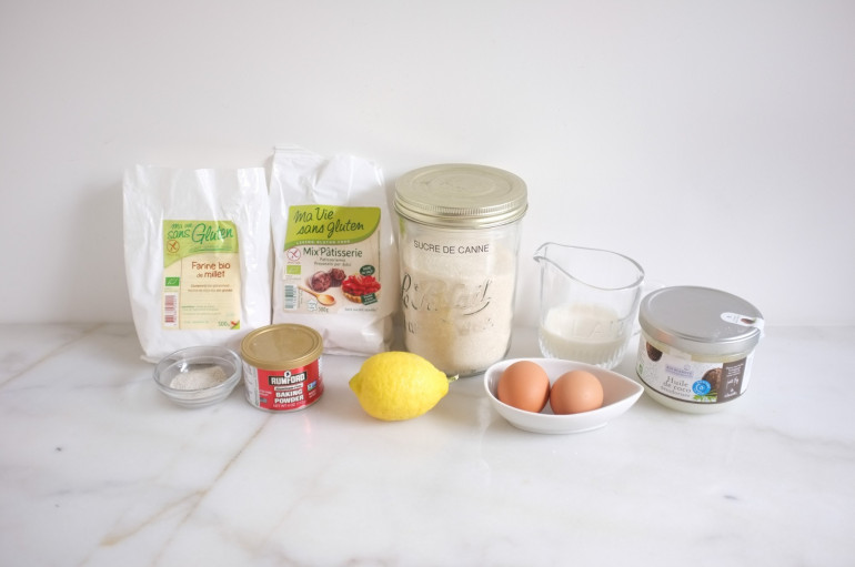 Les ingrédients pour le gâteau au citron sans gluten