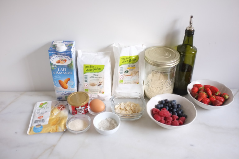 Les ingrédients pour les pancakes moelleux à l'amande sans gluten