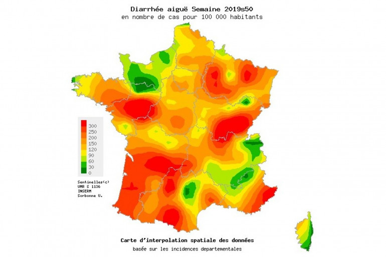 L'épidémie de gastro-entérite en France du 9 au 15 décembre.