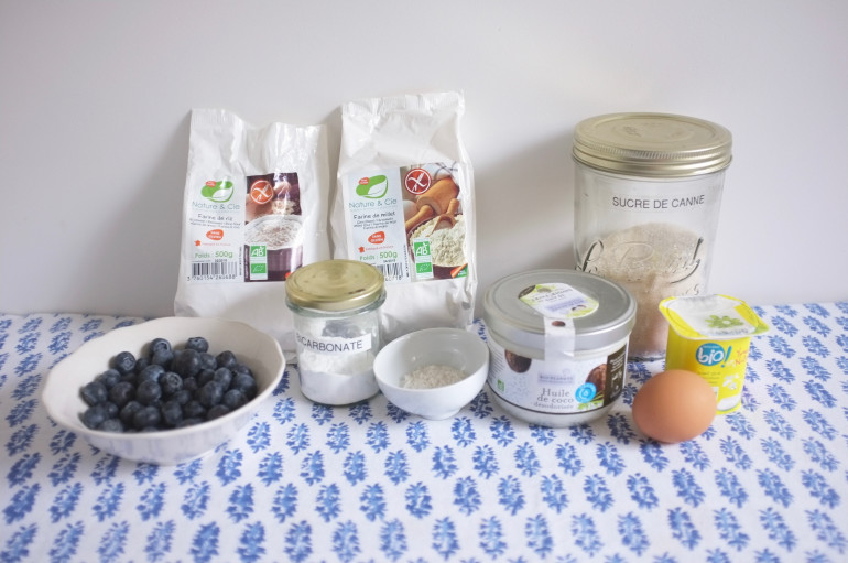 Les ingrédients pour cuisiner les moelleux pancakes sans gluten aux myrtilles
