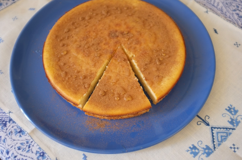 - La texture est alors souple et sans grumeau. Verser la pâte dans le moule et cuire 40 minutes. Les bords seront plus fermes que le centre. Laisser complètement le gâteau refroidir, puis une fois froid, le démouler. Saupoudrer de cannelle en poudre et décorer avec du miel. La réaction chimique du miel liquide sur la cannelle en poudre le fait se regrouper en perles de miel.