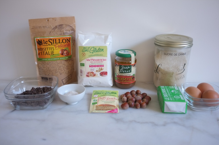 Les ingrédients pour le cake chocolat-noisette sans gluten