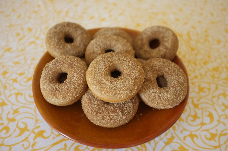 recette sans gluten de donuts à la compote de pomme, miel et cannelle.