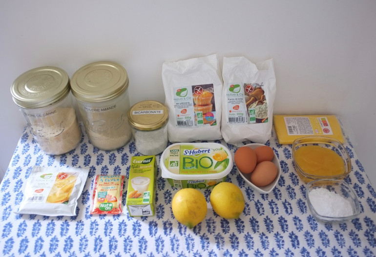La poudre d’amande est très riche en protéines, en fibres, en vitamines B1, B2, B3, B9 et en vitamines E. Elle est également riche en manganèse, en cuivre, en phosphore, en fer et en zinc. L’amande a la propriété d’un haut pouvoir de satiété, ce qui est important lorsque l’on suit un régime sans gluten et donc bénéficie d’une digestion rapide. La farine mix utilisée dans cette recette est simplement composé de farine de riz, fécule de pomme de terre, bicarbonate et gomme de guar. Pour remplacer les 185g de mix pâtisserie, il faut : 95g farine de riz + 90g de fécule de maïs + 1 cuillère à café de gomme xanthane.