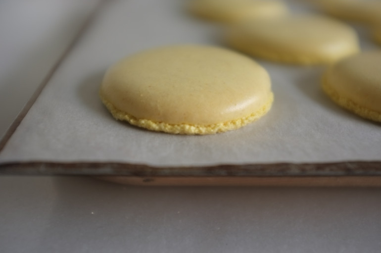 Le secret pour une jolie collerette : ajouter dans le four deux plaques sous la plaque de cuisson des macarons