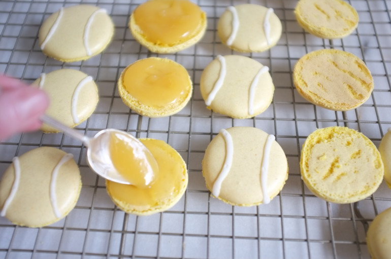 Garnir la moitié des macarons sans glaçage avec la "lemon curd" et assembler les macarons. Il ne reste plus qu'à les déguster devant le match...