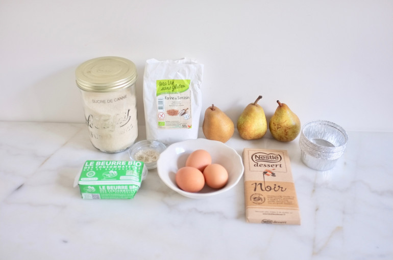 Les ingrédients pour le fondant poire-chocolat sans gluten