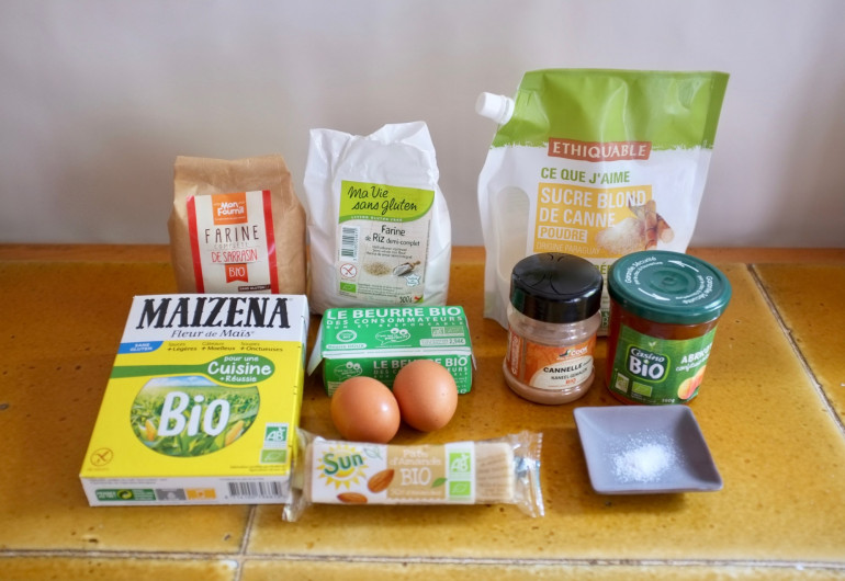 Les ingrédients pour la recette des biscuits à la confiture sans gluten