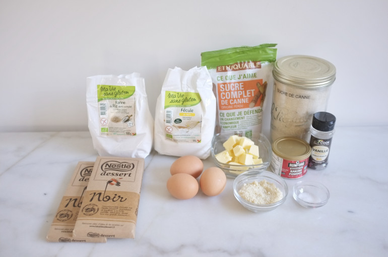 Les ingrédients pour les cookies au chocolat noir sans gluten