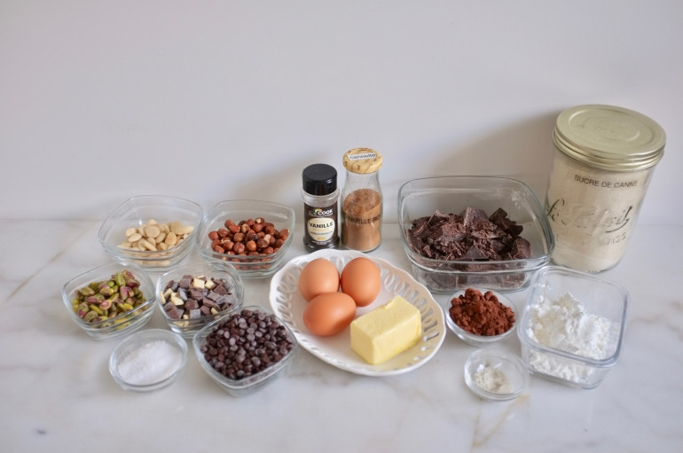 Les ingrédients pour le gâteau fondant "mendiant" sans gluten
