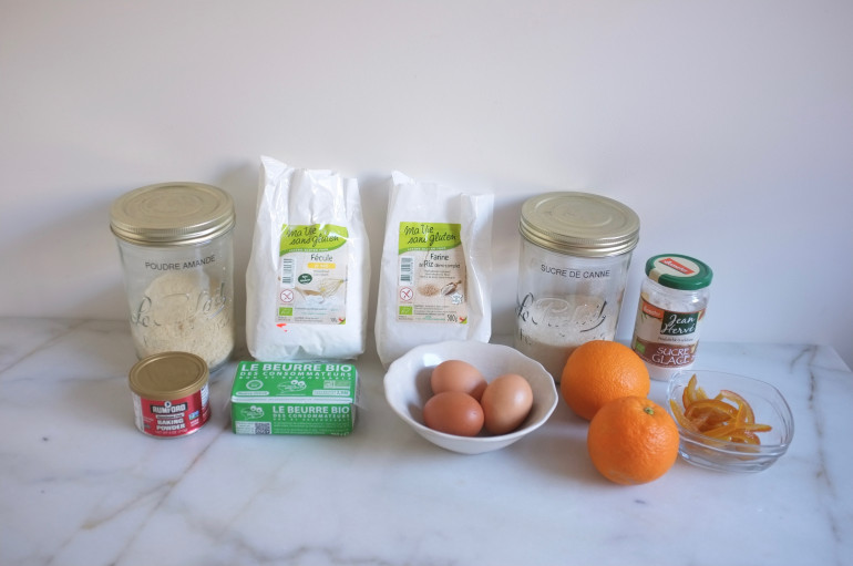 Les ingrédients pour le moelleux à l'orange sans gluten