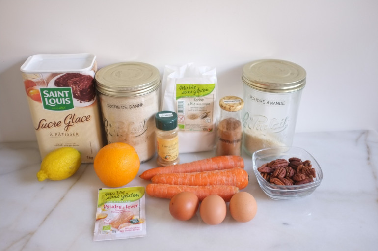 Les ingrédients pour le "carrot cake" américain sans gluten