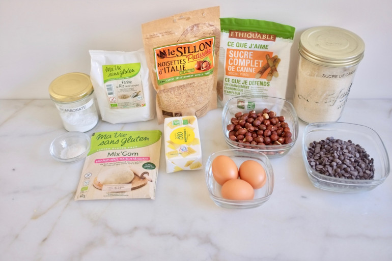 Sans gluten : les ingrédients pour les cookies chocolat-noisette