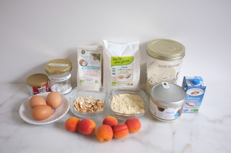 Les ingrédients pour le tendre cake à l'abricot sans gluten