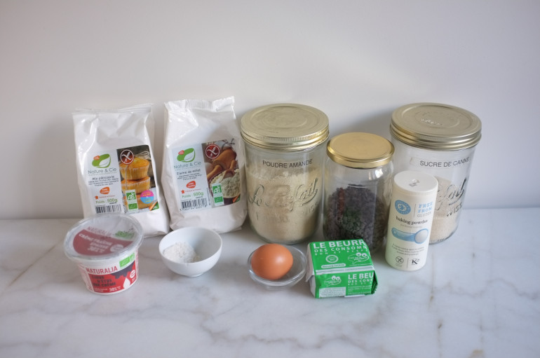 Les ingrédients pour les scones sans gluten aux pépites de chocolat