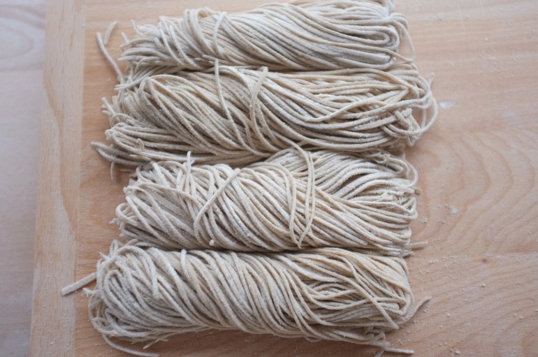 Les nouilles Soba fraichement découpées à la main par le maître Soba