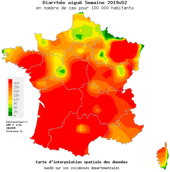 Les consultations en médecine générale liées à la gastro-entérite ont, elles, fortement progressé au cours de la semaine de Noël, avec 289 consultations pour diarrhée aiguë pour 100.000 habitants, selon les estimations du réseau Sentinelles, contre 177 la semaine précédente.
