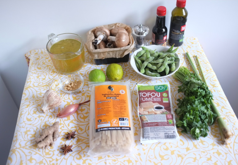 Avec sa saveur épicée, le bouillon asiatique de cette soupe de nouilles et tofu est parfait en hiver pour lutter contre la fièvre et la grippe. En effet, il est parfumé avec de l’anis étoilé et de la citronnelle, deux plantes particulièrement performantes en qualité bactéricide et anti-inflammatoire. Ces plantes asiatiques, connues pour leur qualités médicinales et bactéricides sont des alliés culinaires et de santé pour l’hiver.