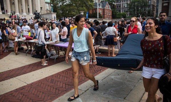 Mardi 19 mai 2015, la prestigieuse Université de Columbia, en plein coeur de New-York, donne son habituelle cérémonie de fin d'études avec lancer de chapeaux, capes colorées et félicitations en personne par le directeur. Ce dernier tourne la tête au moment où une jeune diplômée se présente à lui. Il s'agit d'Emma Sulkowicz. Les cheveux courts et verts, elle se distingue surtout par le matelas qu'elle porte à bout de bras, aidée par quatre amies. La foule l'applaudit à tout rompre.