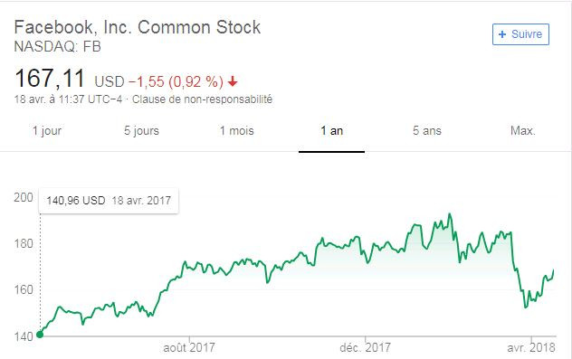 Malgré l'affaire Cambridge Analytica, l'action de Facebook se situe à un niveau plus élevé qu'il y a un an