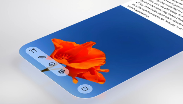 Les icônes des applications, les widgets, les barres d'outils comme les menus contextuels adoptent ce nouvel aspect avec des textures en relief et des variations de profondeur qui s'adaptent aux modes d'affichage et à l'arrière-plan. Sur l'écran verrouillé, l'heure s'adaptera automatiquement au fond d'écran et il sera possible d'afficher des photos avec un effet grossissant en trois dimensions. L'application Photos va bénéficier d'un design plus épuré avec de nombreuses commandes désormais masquées dans un menu flottant pour une expérience plus claire. Idem pour le navigateur Safari dont les pages Web désormais survolées par une barre flottante vont pouvoir occuper la totalité de l'écran.