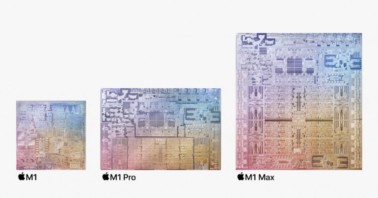Nouveauté cette année, la puce est déclinée dans une version haute puissance, la M1 Max. Réservée à la configuration la plus haut de gamme du MacBook Pro 16 pouces, elle dispose de 57 milliards de transistors, contre 33,7 milliards pour la M1 Pro, d'un circuit graphique de 32 coeurs (contre 16) et jusqu'à 64 Go de mémoire vive unifiée, contre 32 Go pour la M1 Pro. Les deux puces embarquent aussi une unité neuronale et une enclave sécurisée.