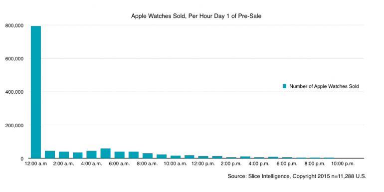 Volume des ventes de l'Apple Watch aux Etats-Unis selon Slice Intelligence