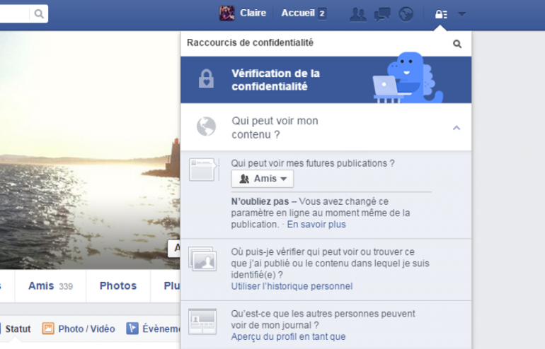 C'est la base pour protéger au maximum son profil. Le géant américain propose différents niveaux de sécurité entre le "public", les "amis de mes amis", les "amis" ou "moi uniquement". Il est fortement conseillé de limiter au maximum la visibilité de vos informations, vos publications et vos photos. Tout cela se gère dans les paramètres de votre compte, en haut à droite de votre page d'accueil.