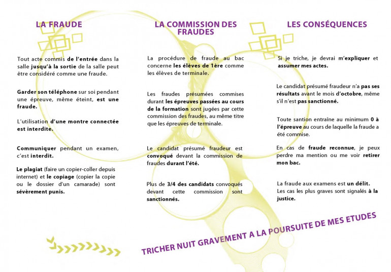 Cette année, le site de la Maison des Examens mentionne noir sur blanc que l'utilisation de moyens de communication comme les téléphones portables, assistants personnels de type Palm Pilot ou montres connectées constituent une tentative de fraude. Un manquement qui peut être suivi par des sanctions disciplinaires, voire pénales, et entraîne, dans tous les cas, la nullité de l'épreuve (un 0 qui compte dans la moyenne) pendant laquelle elle a été constatée.