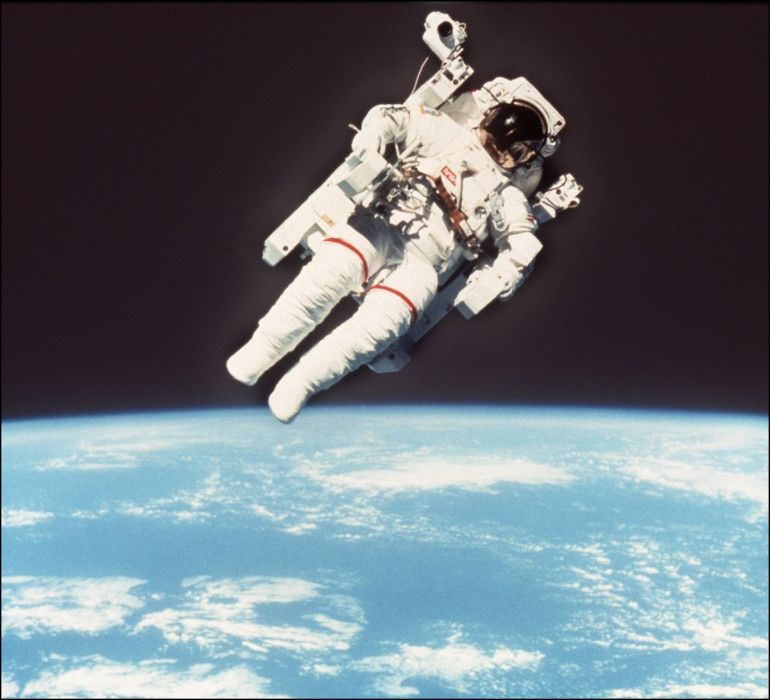 "Bruce McCandless a été le premier humain satellisé tout seul. Grâce à un scooter spatial équipé de petits moteurs fusées qui permet à un astronaute de s'éloigner assez loin. Avec cela de fantastique que dans son champ de vision, éloigné à plus de 100 mètres de la planète, il avait la Terre, le Soleil et son propre vaisseau, auquel il n'est pas attaché. C'est dingue", s'enthousiasme-t-il.