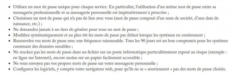Pour définir un mot de passe robuste, l’Agence nationale de sécurité des systèmes d’information (Anssi), a publié un certain nombre de recommandations sur son site.