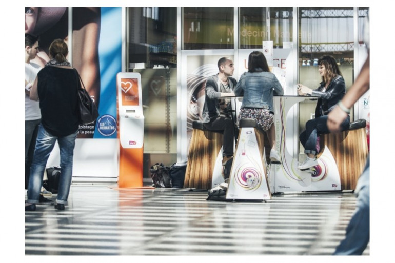 Dans les aéroports on trouve fréquemment des zones de recharge ainsi que dans les gares. La SNCF propose la service "we-bike" : il faut pédaler pour recharger son téléphone.