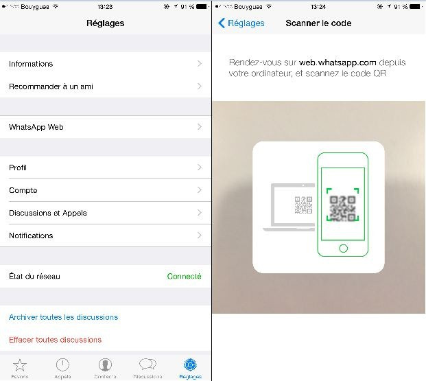 Avant d'en profiter, il faut d'abord procéder à son authentification. La procédure est la suivante. Il faut d'abord mettre à jour l'application mobile, se rendre dans l'onglet "réglages" puis dans "WhatsApp Web".