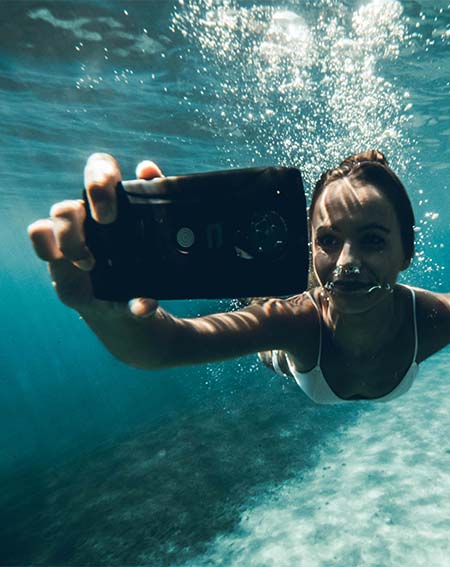Une application dédiée permet de réaliser différents effets (timelapse, slow-motion) et de monter facilement les rushs capturés pour les partager rapidement sur les réseaux sociaux. Pour être certain de ne rien rater, une fonction Dashcam filme en continu et permet à l'utilisateur de sauvegarder les dernières minutes lorsqu'il le souhaite.