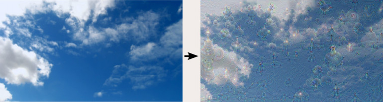 "Si un nuage ressemble un petit peu à un oiseau, alors le système va le faire ressembler encore plus à un oiseau, expliquent les ingénieurs. En réitérant l’action, le programme va reconnaître un oiseau plus fortement et ainsi de suite jusqu’à ce qu’un oiseau très détaillé apparaisse, comme sorti de nulle part."