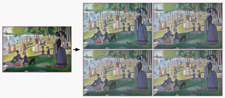 Diverses applications du Deep Dream sur un tableau de Georges Seurat