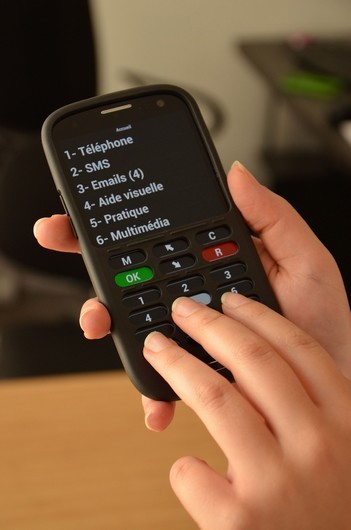 Il est très difficile d'utiliser un mobile avec un écran tactile quand on n'y voit pas ou mal parce qu'il n'y a aucune touche physique qui permette de se repérer. La solution "Claria Vox" de Télorion se compose d'un clavier en silicone avec des touches en relief qui va s'adapter sur des smartphones tactiles. Elle est accompagnée d'un logiciel spécial qu'on installe sur le téléphone avec des applications adaptées aux aveugles...