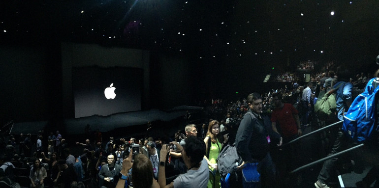 Les journalistes attendent le début de la keynote Apple au Bill Graham Civic Auditorium de San Francisco