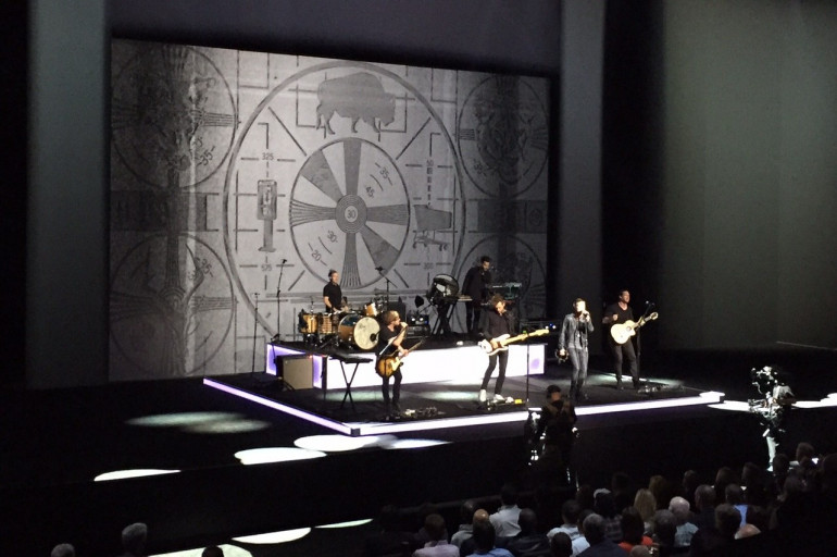 18h40 - Les journalistes prennent place dans la salle. Pour patienter, la sono diffuse Beats One, la radio numérique en continu d'Apple Music. Queens of the Stone Age succèdent à Lana Del Rey.