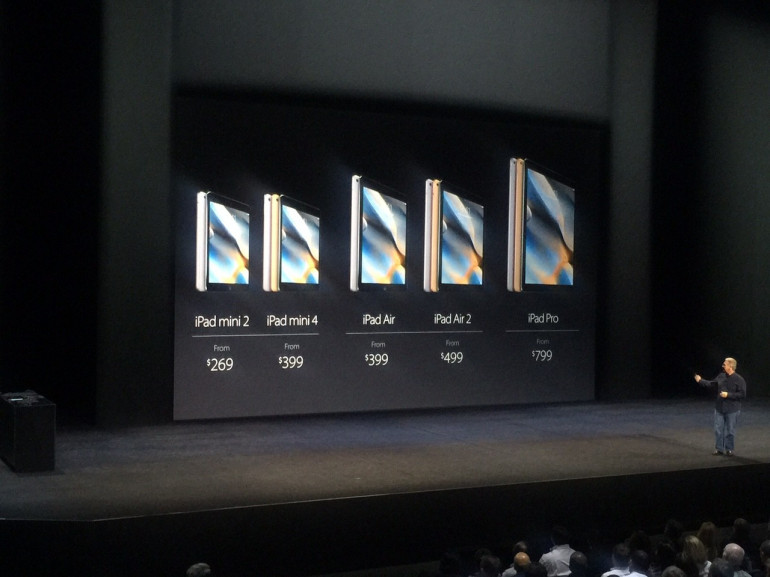 Le nouvel iPhone partage la vedette avec l'iPad Pro. La plus grande et puissante des tablettes Apple veut séduire les professionnels, aussi bien dans le domaine artistique avec un Apple Pencil particulièrement adapté aux architectes ou aux graphistes, que dans celui de la santé. La tablette embarque un écran de 12,9 pouces de diagonale pour 5,6 millions de pixels. Elle bénéficiera d'un large écosystème d'applications, dont les suites Office et Photoshop vantées sur scène par des représentants de Microsoft et Adobe.