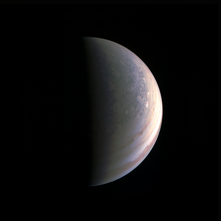 "Les premiers clichés du pôle nord de Jupiter nous paraissent être complètement différents de ce que nous avons vu ou imaginé auparavant", explique Scott Bolton, du Southwest Research Institute à San Antonio au Texas, principal scientifique de la mission Juno. "Les couleurs sont plus bleues que dans les autres parties de la planète et il y a de nombreuses tempêtes et aucun signe des bandes de différentes couleurs que nous avons l'habitude de voir autour de Jupiter", a-t-il précisé. Selon lui, "il est très difficile de reconnaître Jupiter dans ces clichés".