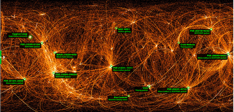 Ainsi, plus les points lumineux sont intenses, plus des rayonnements y ont été enregistrés. Et chaque arc représente chaque trajectoire cosmique repérée par Nicer. Mais le but de la Nasa à plus long terme est de répertorier l'ensemble de ces rayonnements cosmiques, dont la plupart restent encore inconnus, pour établir un "GPS galactique".