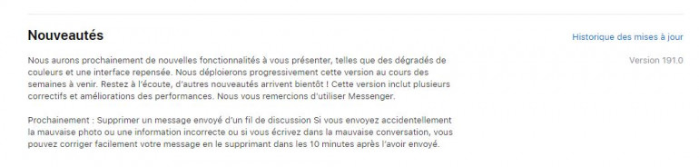 D'après Messenger, la mise à jour devrait être proposée "prochainement" aux utilisateurs d'iPhone. Rien n'a encore été annoncé pour les appareils Android. En octobre, une informaticienne américaine avait cependant repéré l'ajout de la fonctionnalité dans le code de l'application Android et donné un aperçu de son interface.