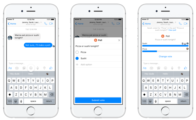 Bientôt deux cordes de plus à l'arc déjà bien fourni de Facebook Messenger. Dans sa volonté de concentrer toujours davantage les usages au sein d'une seule et même interface, le réseau social a commencé à tester deux nouvelles fonctionnalités aux États-Unis, rapportait récemment le site spécialisé TechCrunch. La première vise à faciliter la concertation dans les conversations. Il s'agit d'un module de sondage permettant de visualiser immédiatement quelle option l'emporte parmi les interlocuteurs d'un groupe de discussion. Si vous hésitez entre des séances de cinéma, des bonnes tables ou des lieux de rendez-vous, il suffit de rentrer une question et différentes réponses pour envoyer le sondage à un groupe de contact. Facebook avait déjà lancé une fonctionnalité sondage en 2007, sans trop de succès.