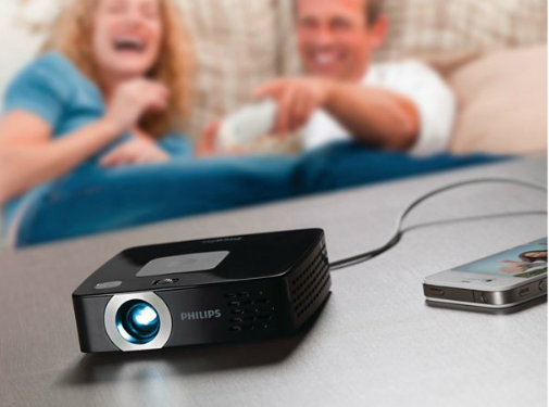 C'est un peu l'accessoire de l'année. Le pico projecteur, qui tient dans le creux de la main, pour projeter vidéo et photos à partir d'un Smartphone.