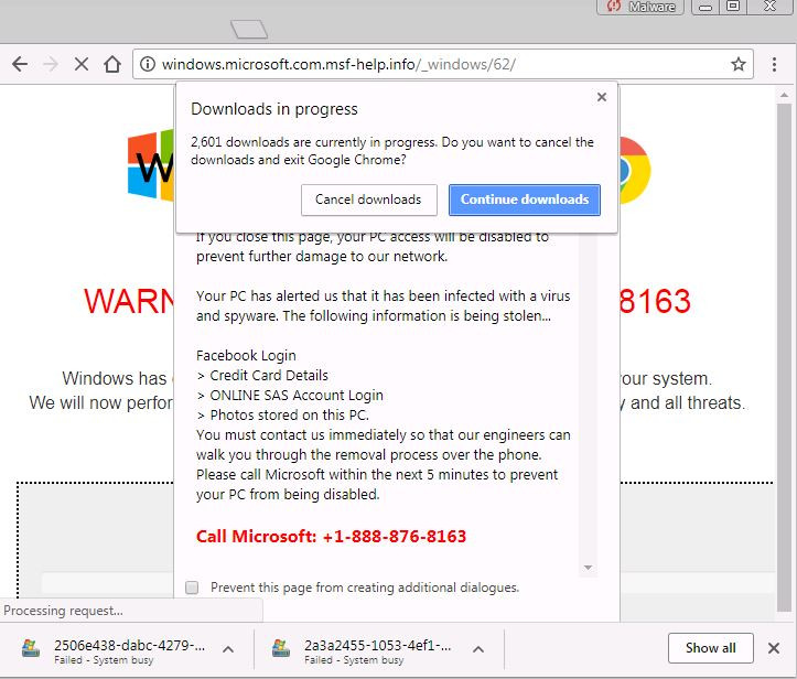 Ces techniques sont courantes sur le Web et beaucoup d'internautes n'y prêtent plus vraiment attention. Les cybercriminels ont trouvé le moyen de rendre l'arnaque crédible. Le programme contient un code javascript qui déclenche le téléchargement simultané d'un très grand nombre fichiers pour saturer la mémoire de l'ordinateur et le rendre momentanément inutilisable. Les utilisateurs les moins avertis ne voient alors pas d'autre solution que de contacter le numéro de téléphone factice.