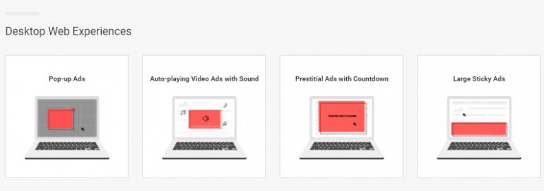Sur ordinateur, les formats concernés sont les vidéos et les sons en lecture automatique, les fenêtres pop-up recouvrant une partie de l'écran, les publicités couvrant l'écran et affichant un compte à rebours ainsi que les grands panneaux qui suivent le défilement de l'écran.
