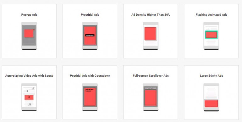 Sur mobile, Google Chrome bloquera les fenêtres pop-up, les vidéos en lecture automatique avec du son, les publicités qui apparaissent après le chargement de la page et affichent un compte à rebours, les publicités qui couvrent plus de 30% de la page, les publicités en plein écran qu'il faut faire défiler avant de pouvoir les fermer et les pages de publicités qui s'affichent avant le chargement de la page.